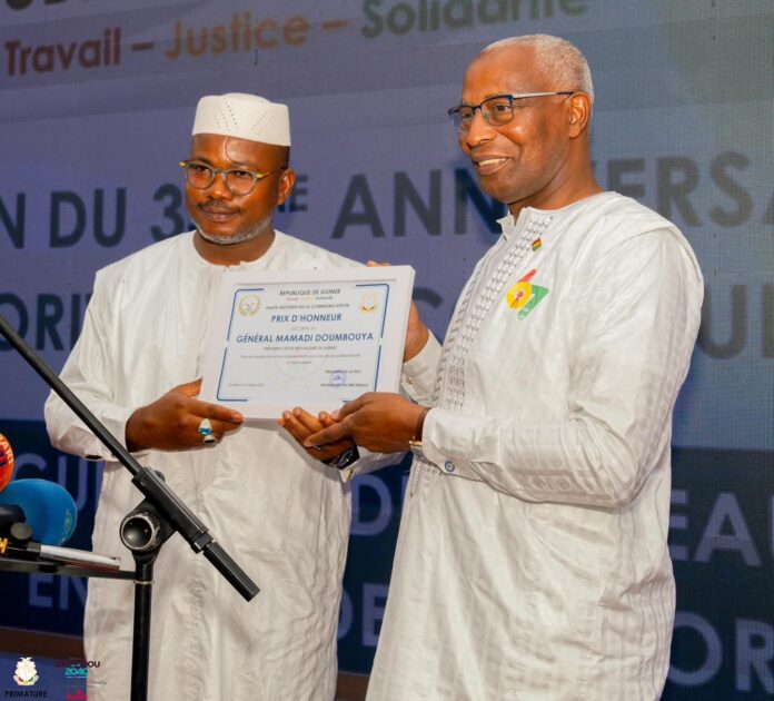 Conakry, 29 octobre 2025 – Au nom du Président de la République, Chef de l’Etat, le Général Mamadi Doumbouya, Le Premier Ministre Amadou Oury BAH, a présidé la cérémonie commémorative du 33ᵉ anniversaire de la Haute Autorité de la Communication (HAC). La régulation des médias sociaux en période électorale : C’est le thème retenu pour cet événement qui s’est déroulé en présence du Président du Conseil National de la Transition (CNT), Dr Dansa Kourouma, des anciens membres du CNC et de la HAC, ainsi que de nombreux professionnels des médias.