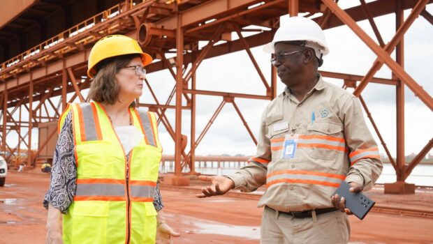 La Compagnie des Bauxites de Guinée (CBG) a annoncé sur sa page Facebook avoir reçu, pour la première fois, Mme Mary Daschbach, Chargée d’affaires de l’Ambassade des États-Unis en Guinée, dans ses installations de Kamsar.