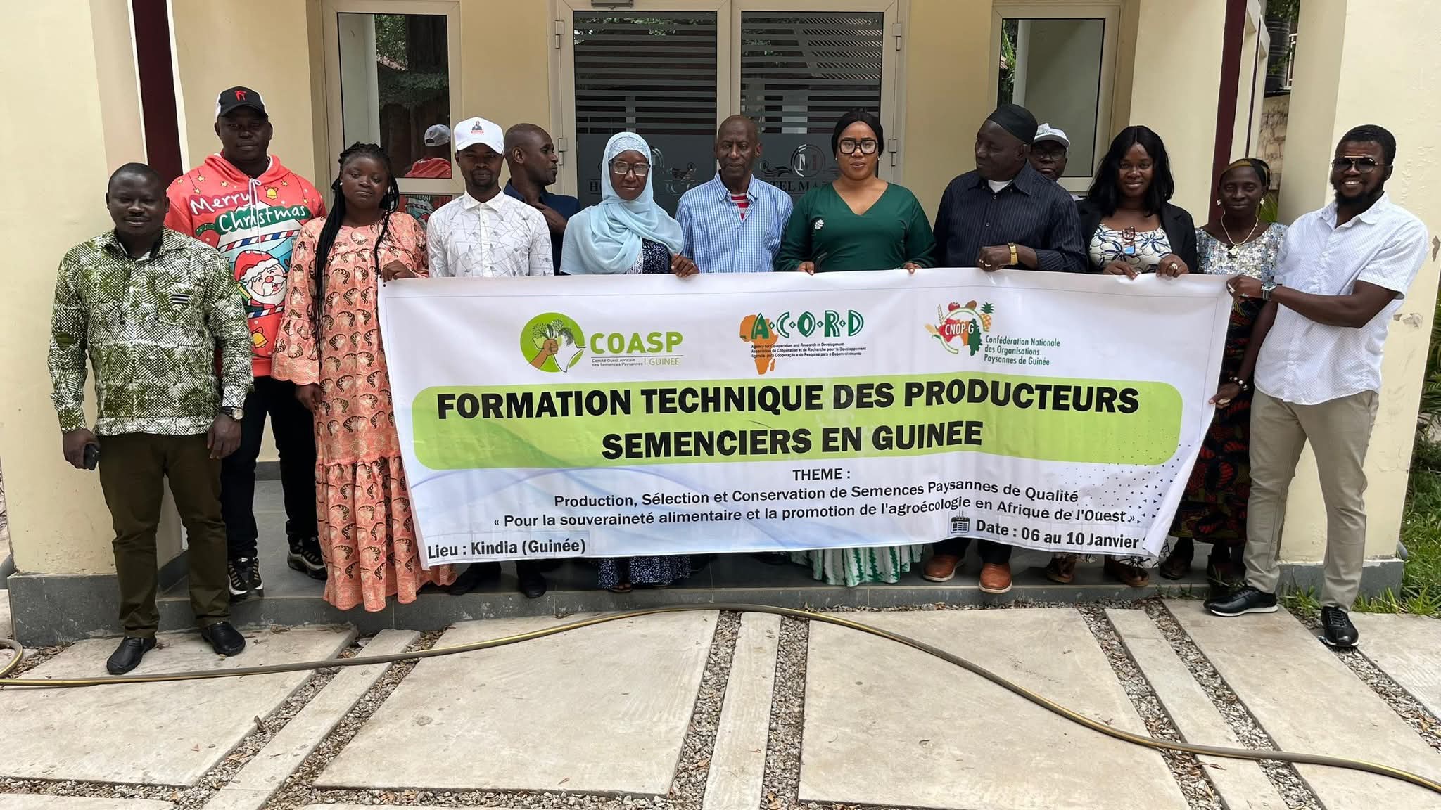Depuis le 6 janvier 2026, des producteurs et productrices de semences paysannes, venus des quatre régions naturelles de la Guinée, participent à une formation nationale sur la production de semences paysannes de qualité. Cette initiative est organisée par le COASP-Guinée, avec le soutien financier de la Coordination nationale du COASP.