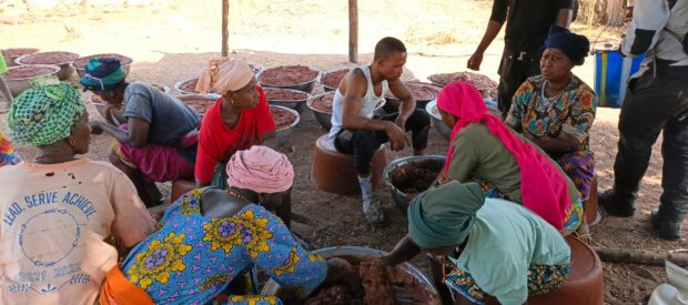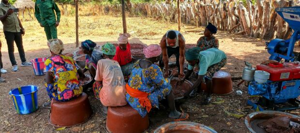 Après une première campagne réalisée en 2024, ayant mobilisé 154 productrices issues de 13 villages et permis la transformation de 5,9 tonnes d’amandes en 1,7 tonne de beurre de karité, une deuxième campagne de production s’est déroulée de novembre 2025 à janvier 2026.