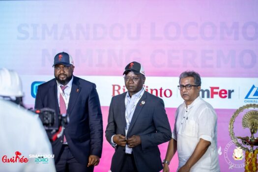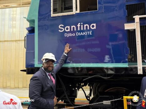 La seconde locomotive, également présentée, porte le nom de “SANFINA”, du nom du village du Président du Comité stratégique de Simandou, M. Djiba Diakité, véritable artisan de l’accélération du projet Simandou.